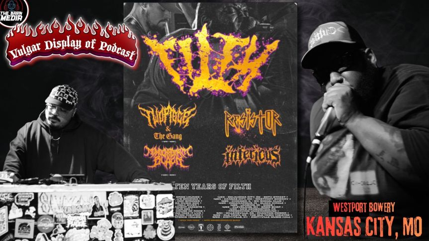 Metalcore hip-hop crossover Filth rolled through Kansas City on their Back to Tha Gutta tour, celebrating ten years of aggression, downtempo metal breakdowns and hip hop beats. Joined by ResistoR and Inferious, the night was equal parts heavy vocals, baseball banter, and a whole lot of head banging.